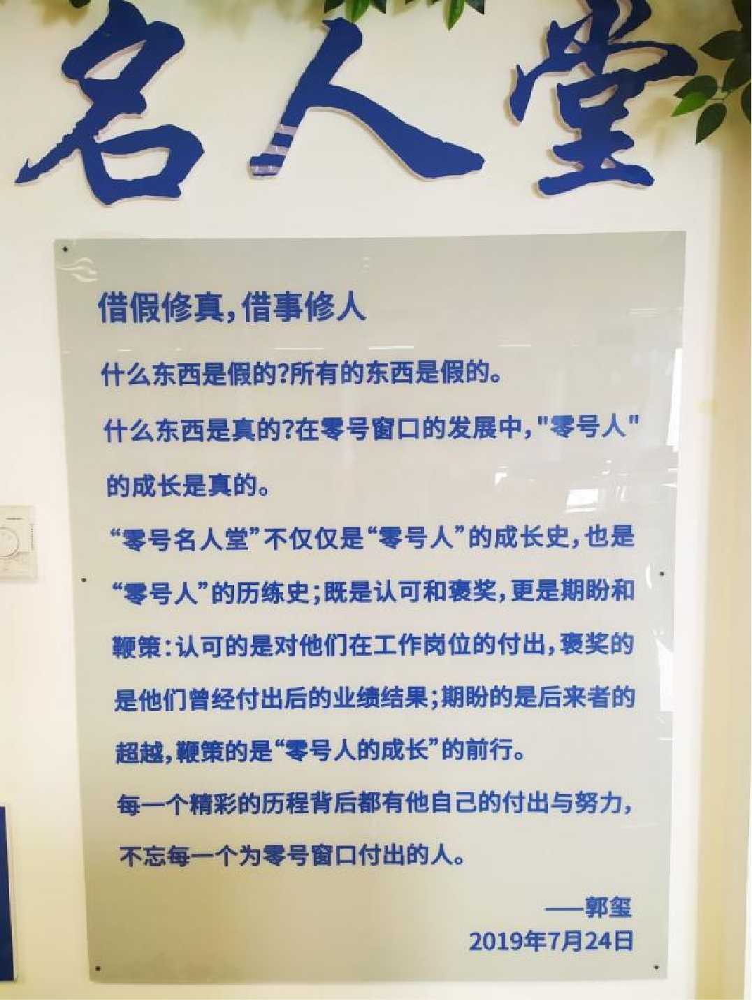 什么东西是真的?再零号窗口的发展中,“零号人”的成长是真的。 “零号名人堂“ 不仅仅是 “零号人”的成长史,也是“零号人”的历练 史;既是认可和褒奖,更是期盼和鞭策:认可的是他们再工作岗位 的付出,褒奖的是他们曾经付出后的业绩结果;期盼的是后来者的 超越,鞭策的是“零号人的成长”的前行。