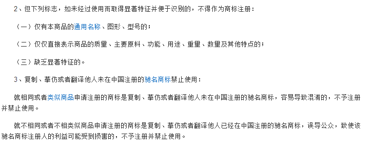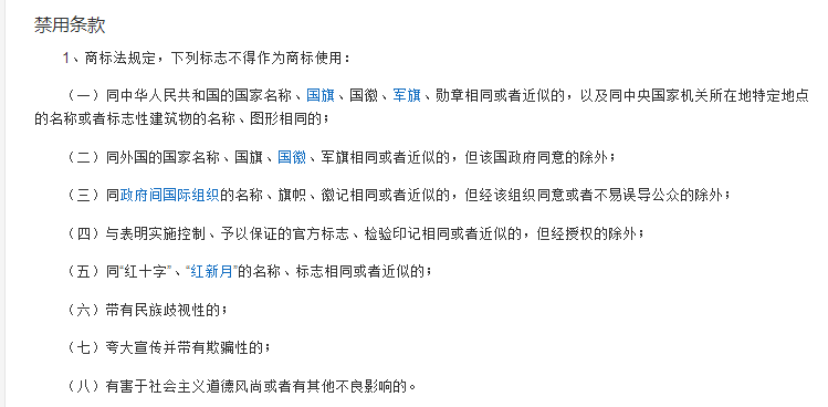 也就是说商标在取名过程中最好避免一个国家的标志,免得给自己带来麻烦,其次,就是要符合我们中华人民传统美德的字眼或者组合!